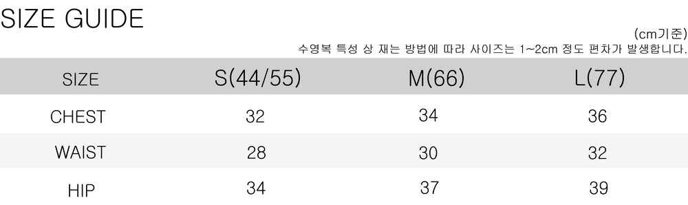 선탠오일이나 선크림 등이 수영복에 닿을 경우 변색의 위험이 있습니다.